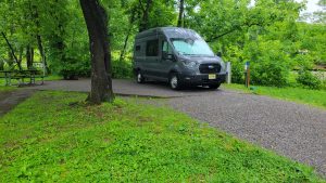 As I mentioned in May we rented a local van from someone who had converted his van with a unique build. He was local and we found him through “Outdoorsy”.  Before we committed, he allowed us to come and check out “Chaser” and taught us about its workings.  Chaser  didn’t have a shower and the fridge was small but we decided to make it work.  Being able to load our supplies directly from home was a plus from other rentals we had done.  Our overly ambitious goal was to visit some friends in North Carolina and make a loop back to eventually hook up with our daughter for one of her largest craft events of the year.