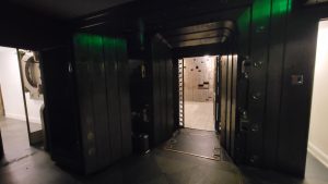 Next, we made our way around a protest going on in the City to the 21 C Museum Hotel Durham.  What a cool place.  A working hotel, but there is an art museum that is free to visit, spread out over several floors.  The exhibits are unique and many focused on the way workers are treated around the globe.  I’m not really a regular visitor to art museums but this one  I would definitely recommend.   Another feature of this hotel/museum is an old bank vault in the basement that is also open for touring.