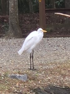 In the morning we had a little time to explore the campground before meeting our local friends for breakfast.  We soon learned that every campground in South Carolina and Georgia seemed to have at least one or two interesting resident birds and warning signs for alligators.  We never did see alligators, or thankfully the snakes that the signs warned of.