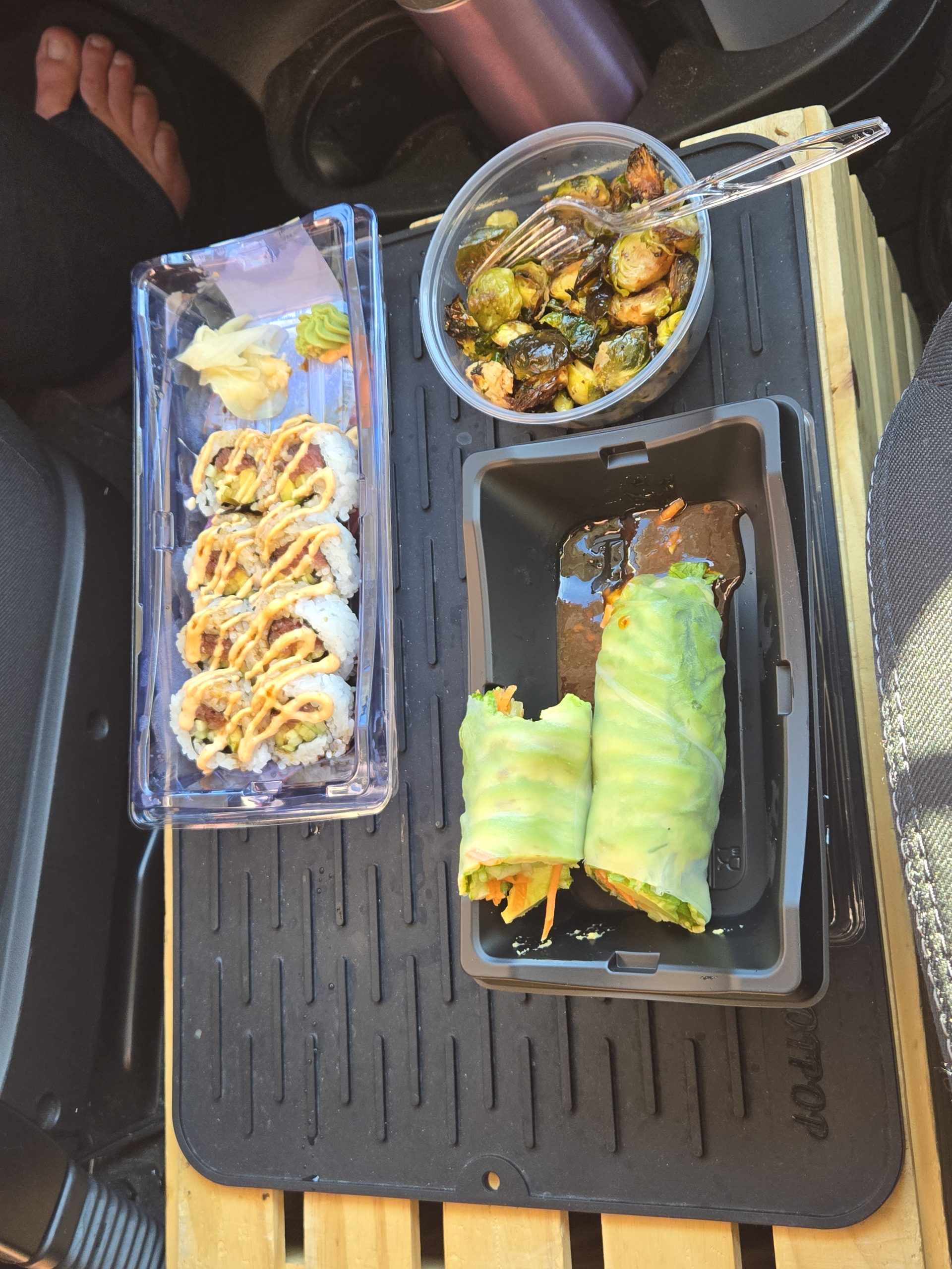 Back at the van, we again headed South.  We stopped and picked up some lunch at Earth Fare grocery store and ate it from our fancy table set up as we traveled.  More on this set up later, as we actually replaced it with a better one.