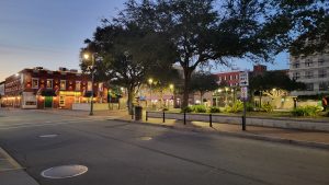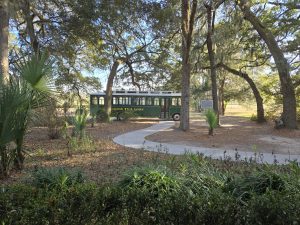 The next day was a hangout at the campground, including an early campfire dinner.  When we had arrived at Spacious Skies, there was an sign about Trolley Tours of Savannah with a shuttle pick up at the campground.  So Thursday I took the shuttle in, armed with a coupon for $5 off the tour.  It was a hop on hop off but not as well organized as some.  I got off a few times and quickly found that some drivers were better at narrating then the others.  When I got to the final ride for the day, the driver was such a good story teller that I would have liked to have stayed on and done the whole route with “Red” but I had a stop I wanted to see before it closed.  When I say they were not as organized as I would have liked, it has to do more with the signage for their stops which was very generic.  It also seems in this day and age they should have an app to direct you to the nearest stop.  At the end of my day I would have like to take the trolley back around, as my feet were getting tired, but I couldn’t figure out where to go.  Still I learned a lot about the history and legends of Savannah. I had brunch near one of the stops at The Urban Deli, very good vegan breakfast sandwich with coconut bacon.   I walked along the River Front, through a number of Savannah’s famous squares and that final stop I mentioned was at the only Gothic Synagogue in America where I got a bit of a private tour.