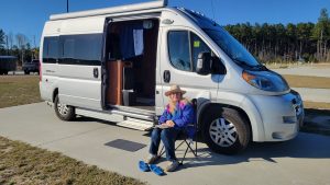 Having started the year with a new part time status at work, I was anxious to get on the road again and get away from the cold dismal January weather in New Jersey.  The week before we left, the weather in Savannah was in the 70’s.  We were thinking we’d get that far South and unwinterize Spud, if not sooner.  In reality, we never had weather warm enough to unwinterize. Still we had some lovely days, wore our winter clothes a lot, slept under heavy covers and learned some great winter camping lessons.
