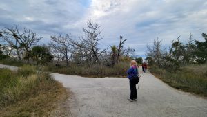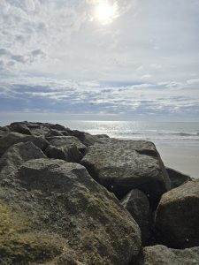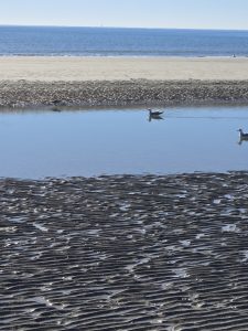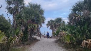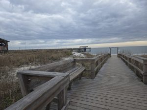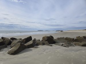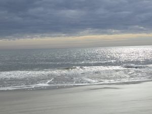 After breakfast I went to peruse the shops at the massive Coligny Plaza.  Since it was only 9:30 and many of the shops didn’t open until 10, I decided to at least go check out the beach.  It wound up that it was actually warmer on the beach, without the chilly breeze in town, which worked out well, because that reversed later in the day.  The beach has a wide strip of packed sand and it was delightful walking in the sun.  I was hardly alone, which made me feel safe and comfortable taking a long walk, going some in each direction.