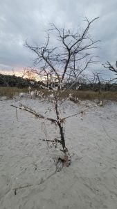 Next we visited Driftwood Beach, the pictures say the most.  All of these haunting trees are due to the one side of the island eroding, as the sand builds up on the opposite side. The big fluffy bird is a wood stork, identified by some of my friends through Facebook.
