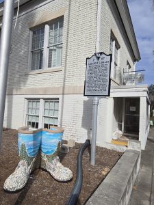 The next morning we headed out early to Beaufort, North Carolina.  Steve parked the van and set to work while I explored the historic town, it’s museums and businesses.  I started at the Visitor’s Center, located in a revolutionary war arsenal,  to get some guidance.  The lovely lady working there mentioned that the National Park Center across the street had some tours, so I headed there next.  It seems I missed the formal tour but the ranger there launched into a 15 minute story on the part the Beaufort played in the Civil War, when it became occupied by the U.S. forces looking for a hold between Charleston and Florida.  By the time the U.S. army occupied the city, all of the landowners had fled, leaving behind thousands of formally enslaved people. The story of those people became the basis for the resurrection and rebuilding after the Civil War as the formally enslaved gained their freedom.  It was a fascinating story that I  knew little of before my visit.  The town was lovely but the waterfront disappointing.  There was a fence blocking the view of most of the waterfront, which I later learned was because of the seawall which needs several years of rebuilding to be safe.  One of the locals said they are looking into a more attractive fence for the duration of the project.  Later when I wandered the neighborhood on the other side of town from the shops, I saw much nicer scenery.  I also stumbled upon another historic synagogue, quite by chance.